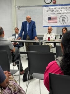 The American Association of Veterinarians of Indian Origin (AAVIO) held its annual meeting on Sep.21, 2024, in Washington, D. C. , with members and past presidents attending from across the U.S. Special guests Dr. Mahesh Katra from Jaipur, Rajasthan, and Dr. Vijay Kumar Sinha from Patna, Bihar, attended the gathering.