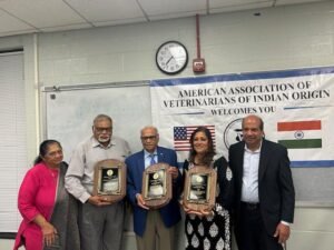 This year’s meeting was particularly emotional, according to Dr. Ravi Murarka, president of AAVIO, as the organization recognized three distinguished veterinarians: Dr. M.R. Patel, retired vice-chancellor of Jabalpur and Gujarat Veterinary Colleges; Dr. Nirwan Thapar, a pathologist and past president of AAVIO; and Dr. J.P. Dubey, a parasitologist and past president from the USDA.